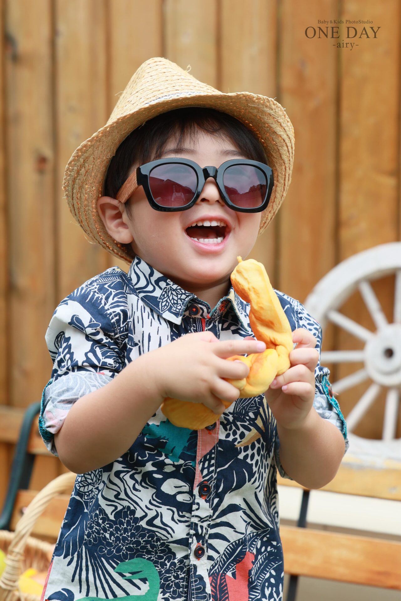 前に1歳のお誕生日撮影でairyに来てくれた際には、おばあちゃんからのプレゼントだという犬のロボットと一緒でしたが